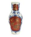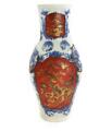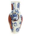 Japansk gulvvase af porcelæn, dekoreret i underglasur blå med vegetation i circulære felter og lak i sort, rødt og guld med havepartier. 19. årh. H. 77.
