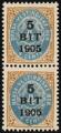 1905. 5 Bit/4 Cents, brown/blue. Pair with normal + inverted frame. MNH. AFA 1.650. Cert. Grønlund [ 33+33y ] [ ** ]