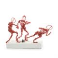 Fodboldspillere. Usigneret. Wire, plastik og bemalet træ. Unik. H. 31. B. 45.