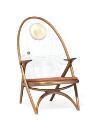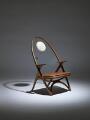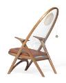 “Ketcher stol”. Lænestol med stel af amerikansk valnøddetræ, ryg og sæde udspændt med strenge af nylon, nakkehynde med lys vaskeskind, kontravægt i form af messingkugle, løs hynde i sæde med patineret rødbrunt skind. Udført og stemplet 1970–1980'erne hos snedkermester Søren Horn, København.