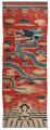 Kinesisk Ningsha søjletæppe, klassisk design med snoet drage på rød bund. Ca. 1900. 266×94.