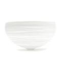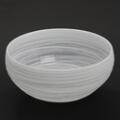 A clear glass table bowl inlaid and applied with white glass spirals. Unsigned. Unique. H. 18.5. Diam. 34 cm.