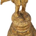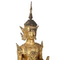 A Thai Rattanakosin Buddha figure of gilt bronze, standing on a throne with the hands in abhaya mudra. C. 1900. H. 98. cm.