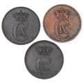2 øre 1876, 1887 (pudset), og 1892 CS, H 18A, i alt 3 stk.