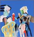 “En ret stor familie”. Signeret Sylvester 99; signeret med titel og datering på bagsiden. Akryl på lærred. 120×110 cm. (2)