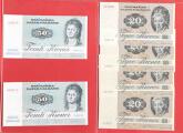 Denmark, coll. paper money, unc., 100 kr (5), 50 kr (4), 20 kr (43) og 10 kr (c. 65 pcs.).