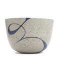 Bordskål af stentøj, dekoreret med grafisk mønster i blåt. Signeret monogram. Unik. H. 16,5. Diam. 25 cm.