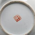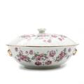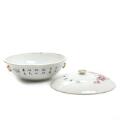 Kinesisk lågfad af porcelæn, dekoreret med blomster i transferprint og poesi, i siderne små hanke. Mærket. 20. årh. H. 15. Diam. 26 cm.