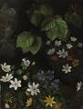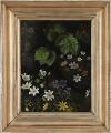 Forårsblomster og bøgegrene. Usigneret. Olie på træ. 23×18 cm.