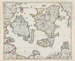 “Insularum Danicarum (...)”. Kort over Sjælland. 1685. Håndkoloreret kobberstik. Bladstørrelse 52×64 cm. Uindrammet.