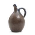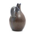 Spaltekande af stentøj dekoreret med brunlig glasur med blå elementer. Signeret E. St. N. 64, I. Udført og stemplet hos Saxbo, 1950–1968. H. 20 cm.