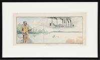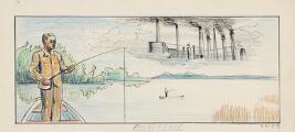 Surrealistisk komposition. “Folkeferie”. Signeret v.b.-p. 39. Farvekridt på papir. Bladstørrelse 16×36 cm.