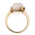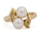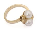 Perlering af 14 kt. guld prydet med to kulturperler. Vægt ca. 4,2 g. B. 12 mm. Str. 50,5.