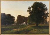 Aftenstemning i Dyrehaven. Sign. E. R. Eilersen 1888. Olie på lærred.