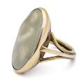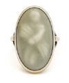 Porcelænsring af sterlingsølv prydet med grønlig procelæn. Vægt ca. 7 g. B. 2,9 cm. Str. 52. Designet af Jais Nielsen.