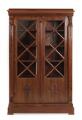 A mahogany bookcase with two glass doors, carved with profiled edges and ornamentation. Empire style. 20th century. H. 182. W. 116. D. 37 cm.