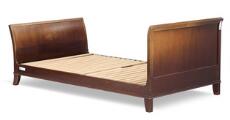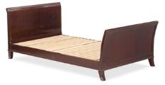 Mahogany bed with brass lists. Lamellae bottom. Presumably made by Normina. L. 194 cm. W. 109 cm. Inside: L. 194 cm. W. 109 cm.