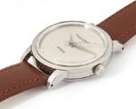 Ingenieur af stål, ref. 666. Mekanisk værk med automatisk optræk, kaliber 852. Omkring 1957. Læderrem med spænde af guldbelagt stål. Ø 36 mm.