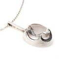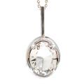 Bjergkrystalvedhæng af sterlingsølv prydet med en oval, facetslebet bjergkrystal. L. 5 cm. Kæde af sølv medfølger. L. 69 cm. 1974.