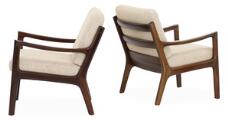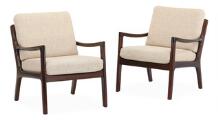 “Senator”. A pair of stained mahogany chairs. Loose cushions in seat and back upholstered with light coloured wool. Manufactured and marked by Cado. (2)