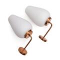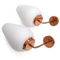 Et par væglamper af kobber med koniske skærme af opalglas. 1930'erne. H. 38. (2)