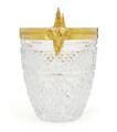 A 20th century crystal and gilt bronze ice bucket, handles in shape of ram's heads. H. 27 cm.