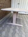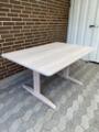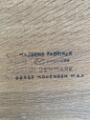 “Shaker”. Spisebord af massiv eg med tillægsplade af grålakeret træ. Udført og stemplet hos C.M. Madsen, Haarby. B. 90 L. 140/190. (2)