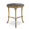 Lille fransk bord af bronze, såkaldt guéridon. Plade af gråbroget marmor. Louis XVI form, ca. 1920. H. 49. Diam. 42.