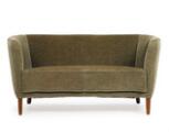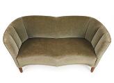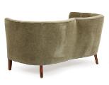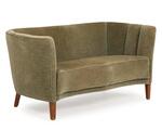 To-personers sofa med ben af bejdset bøg, betrukket med grønt velour. 1930–40'erne. L. 147.