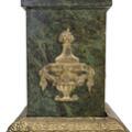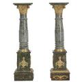 Et par piedestaler af grønbroget marmor, med monteringer af bronze. Empireform, 20. årh.s slutning. (2).