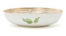 “Flora Danica” skål af porcelæn, dekoreret i farver og guld med blomst. 3504. Royal Copenhagen. Diam. 23 cm.