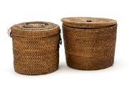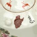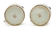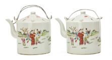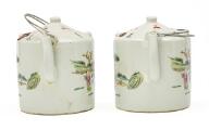 Et par kinesiske tekander af porcelæn, dekorerede i emaljefarver H. 13 cm, i tilhørende beholdere af flet. 20. årh. (2)