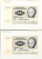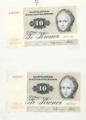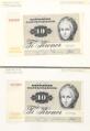 Samling af 10 kr sedler fra 1972–1998 komplet mht. serier, underskrifter og årstal, i alt 57 varianter + 3 ekstra