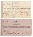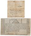 Danmark, 1 Rigsdaler Courant 1795, nr. 19619, Sieg 39, Pick A28, Rø S38a, 12 skilling 1809, Sieg 45; Slesvig-Holsten, Tønder, 4 og 12 skilling 1812, Pick A646 og A647, samt placat for Kiøbenhavn angaaende de i bank courant tegnede assurancers omsætning til rigsbankpenge, i alt 5 stk.