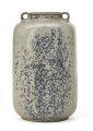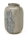 A four-sided stoneware vase with two small, openwork handles. Decorated with blye and grey glaze. Signed monogram. H. 15.5 cm.