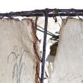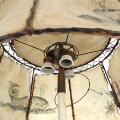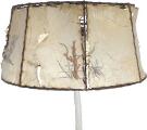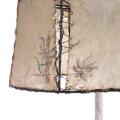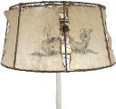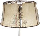 Narwhal tusk lamp with base made of parts of narwhal tusk, lampshade made of painted skin and metal. 20th century. H. incl. mounting 166 cm.