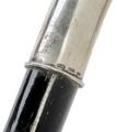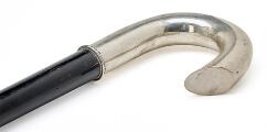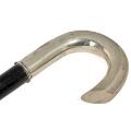 Stok af sortlakeret træ med håndtag af sølv. 20. årh. L. 92 cm.