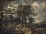 Skovparti med hyrder. Sign. Ian Loot 1654. Olie på lærred. 206×276.