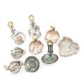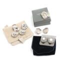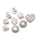 Four pairs of earclips and a brooch of silver tone metal. L. 2.5–3.5 cm. (9)