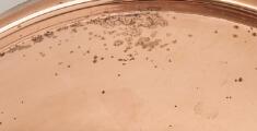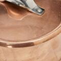 Normal patina due to age and use, including scratches and marks. Pot cover with some spots of corrosion. Casserole cover rim with a dent.