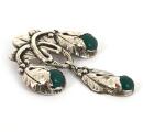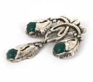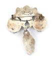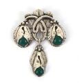 A silver brooch in the shape of foliage set with cabochon green plastic, mounted in silver. Weight app. 17 g. App. 7.8×5.8 cm.