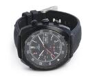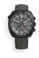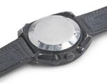 Wristwatch of PVD-coated steel, ref. 11004. Mechanical chronograph movement with automatic winding, day and date indications, cal. 5100. 1980s. Rubber B strap with buckle of steel. Diameter 43.5 mm.