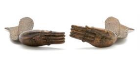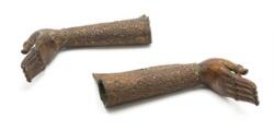 Et par underarme og hænder af forgyldt bronze fra en Buddha-figur. Thailand 19. årh.s slutning. L. ca. 30 cm. (2)