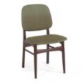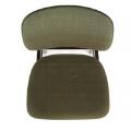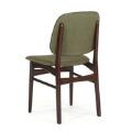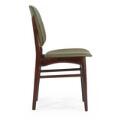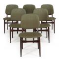 Set of six dark stained mahogany chairs. Seat and back upholstered with green wool. Back with black leather edging. (6)