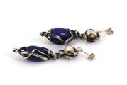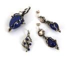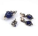 A lapis and pearl jewellery set compriisng a pair of ear pendants and two pendants each set with polished lapis lazuli and baroque cultured freshwater pearlsn and keshi pearls, mounted in silver. Weight in total app. 31.5 g. Ear pendants L. 4.7 cm. Pendants incl. eye-lets L. 3.4–6.4 cm. (4)
