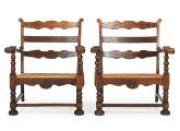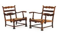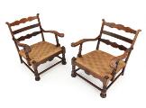 Et par lænestole af patineret eg, sæder med flettet papirgarn. 1930'erne. (2)