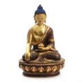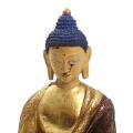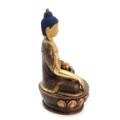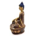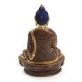 Medicine Buddha of brown patinated bronze, seated in meditating position on lotus throne, cold painted head. Nepal. 20th century. H. 15 cm.