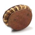 Dark stains under the eye. Wear to cold paint at the hair and the chin. Ordinary wear due to age and use.