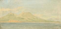 View towards Mount Vesuvius. Unsigned. Oil and pencil on paper laid on canvas. 22×44 cm.
