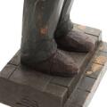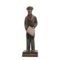 Workman standing with a newspaper. Signed monogram. 8–1-1946. Carved and painted wood. H. 32 cm.